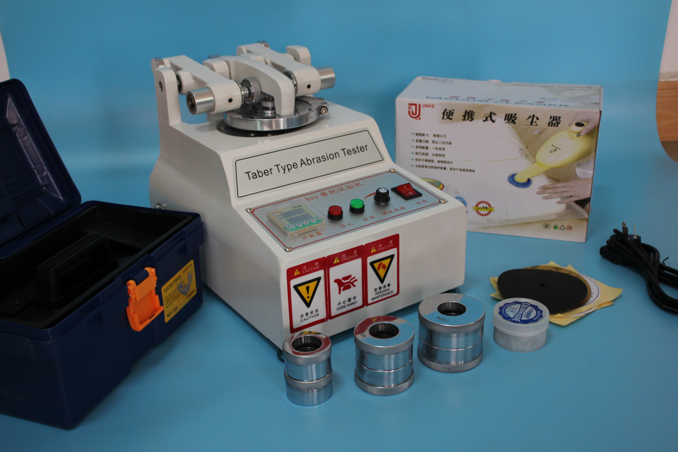 本機(jī)適用于皮革、布料、涂料、紙、地磚、合板、玻璃、天然橡膠等到耐磨試驗(yàn),方法為用標(biāo)準(zhǔn)切刀裁取試件,用規(guī)定型號的砂輪,并負(fù)荷一定的重量加以磨耗,到規(guī)定的轉(zhuǎn)數(shù)后取出試件,觀察試件磨后的狀況或試件試驗(yàn)前的重量與試驗(yàn)后的重量差.磨耗指數(shù)計(jì)算公式:磨耗損失重量/試驗(yàn)回轉(zhuǎn)數(shù)×1000供砂輪號:CS17