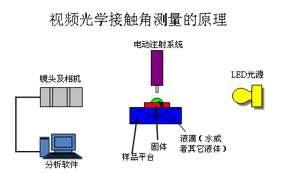 對于理想的平面固體表面,當(dāng)液滴在表面達平衡后。只有一個符合Young方程的接觸角。但實際固體表面是非理想的,因而會出現(xiàn)滯后現(xiàn)象,致使接觸角的測量往往很難重復(fù)。但經(jīng)過精心制備和處理的表面,有可能得到較重復(fù)的數(shù)據(jù),特別是高分子的表面。表面的制備和處理的目的是要得到較光滑、干凈的理想表面,但具體的工藝因樣品而異,這里不作更多的介紹。這里主要介紹一些常用的接觸角測定方法,它們都是針對氣—液—固體系的接觸角而設(shè)計的。但其中有些方法,只需略加修改,亦適用于液—液—固體系接觸角的測定。測定接觸角有多種方法,可根據(jù)直接測定物理量分為四類:⑴靜滴法(角度測量法)、⑵高度、長度測量法⑶力測法⑷透過測量法。前三種適用于連續(xù)的平滑固體表面,后一種方法可用于粉末固體表面接觸角的測定。